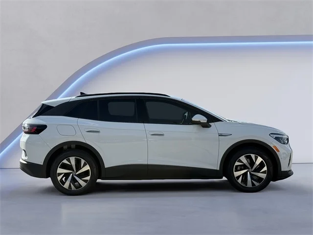 The ID.4 comes with durable 19-inch machined alloy wheels and all-season tires that provide excellent traction in wet and dry driving environments. Roof rails give drivers the option of installing roof-mounted cargo carriers for added storage space. This EV SUV has LED headlights that turn on or off automatically based on outdoor lighting conditions, LED daytime running lights, and illuminated door handle recesses for style and convenience. Rain-sensing windshield wipers are also standard.