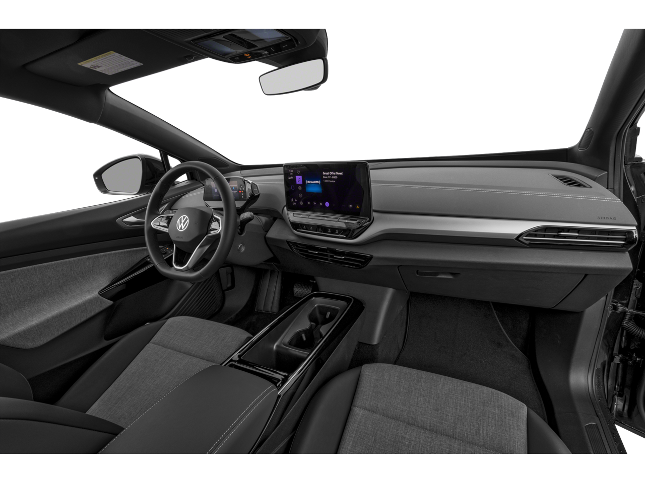 opal white pearl 2025 Volkswagen ID.4 Pro RWD Single-Speed Automatic 4-Wheel Independent Suspension, 7 Speakers, ABS brakes, Air Conditioning, Alloy wheels, Auto High-beam Headlights, Auto-dimming Rear-View mirror, Automatic temperature control, Brake assist, Bumpers: body-color, Cloth Seating Surfaces, Delay-off headlights, Driver door bin, Driver vanity mirror, Driver's Seat Mounted Armrest, Dual front impact airbags, Dual front side impact airbags, Electronic Stability Control, Emergency communication system: VW Car-Net Safe & Secure 5-year, Exterior Parking Camera Rear, Four wheel independent suspension, Front anti-roll bar, Front Bucket Seats, Front dual zone A/C, Front reading lights, Fully automatic headlights, Heated & Actively Ventilated Front Seats, Heated door mirrors, Heated front seats, Illuminated entry, Low tire pressure warning, Navigation System, Occupant sensing airbag, Outside temperature display, Overhead airbag, Overhead console, Panic alarm, Passenger door bin, Passenger seat mounted armrest, Passenger vanity mirror, Power door mirrors, Power steering, Power windows, Radio data system, Radio: Discover Pro Max w/Touchscreen Navigation, Rain sensing wipers, Rear anti-roll bar, Rear reading lights, Rear window defroster, Rear window wiper, Remote keyless entry, Speed control, Speed-sensing steering, Split folding rear seat, Spoiler, Steering wheel mounted audio controls, Telescoping steering wheel, Tilt steering wheel, Traction control, Trip computer, Turn signal indicator mirrors, Variably intermittent wipers, Ventilated front seats, and Wheels: 19 2-Tone Machined Alloy. Electric Motor