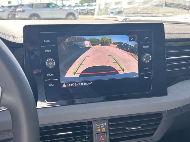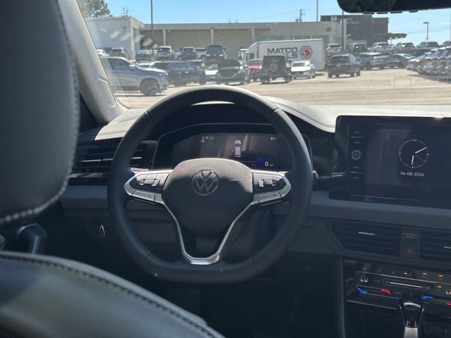 Opal White Pearl 2026 Volkswagen Jetta 1.5T SE FWD 8-Speed Automatic with Tiptronic Nb Artificial Leather. Nb Artificial Leather, 4-Wheel Disc Brakes, 6 Speakers, ABS brakes, Active Blind Spot Monitor, Air Conditioning, Alloy wheels, AM/FM radio: SiriusXM with 360L, Auto-dimming Rear-View mirror, Automatic temperature control, Brake assist, Bumpers: body-color, CloudTex and V-Tex Leatherette Seat Trim, Delay-off headlights, Driver door bin, Driver vanity mirror, Dual front impact airbags, Dual front side impact airbags, Electronic Stability Control, Emergency communication system: VW Car-Net Safe & Secure 5-year, Exterior Parking Camera Rear, Front anti-roll bar, Front Bucket Seats, Front Center Armrest, Front dual zone A/C, Front wheel independent suspension, Fully automatic headlights, Heated door mirrors, Heated Front Seats, Heated front seats, Illuminated entry, Leather Shift Knob, Leather steering wheel, Low tire pressure warning, Occupant sensing airbag, Outside temperature display, Overhead airbag, Overhead console, Panic alarm, Passenger door bin, Passenger vanity mirror, Power door mirrors, Power driver seat, Power moonroof: Panoramic, Power steering, Power windows, Radio data system, Radio: MIB3 Composition Media with 8 Touchscreen, Rain sensing wipers, Rear anti-roll bar, Rear reading lights, Rear seat center armrest, Rear window defroster, Remote keyless entry, Speed control, Speed-sensing steering, Split folding rear seat, Steering wheel mounted audio controls, Tachometer, Telescoping steering wheel, Tilt steering wheel, Traction control, Trip computer, Variably intermittent wipers, and Wheels: 17 Twin 5-Spoke 2-Tone Machined Alloy. 1.5L I-4 DI DOHC Turbocharged