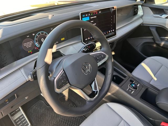 platinum gray metallic 2026 Volkswagen Tiguan 2.0T SE R-Line Black FWD 8-Speed Automatic 4-Wheel Disc Brakes, 4-Wheel Independent Suspension, 7 Speakers, ABS brakes, Air Conditioning, Alloy wheels, AM/FM radio: SiriusXM with 360L, Auto High-beam Headlights, Auto-dimming Rear-View mirror, Automatic temperature control, Brake assist, Bumpers: body-color, Compass, Delay-off headlights, Driver door bin, Driver vanity mirror, Dual front impact airbags, Dual front side impact airbags, Electronic Stability Control, Emergency communication system, Exterior Parking Camera Rear, Four wheel independent suspension, Front anti-roll bar, Front Bucket Seats, Front Center Armrest, Front dual zone A/C, Front reading lights, Fully automatic headlights, Heads-Up Display, Heated door mirrors, Heated Front Seats, Heated front seats, Illuminated entry, Knee airbag, Leather Shift Knob, Leather steering wheel, Low tire pressure warning, Occupant sensing airbag, Outside temperature display, Overhead airbag, Overhead console, Panic alarm, Passenger door bin, Passenger vanity mirror, Perforated V-Tex Leatherette Seating Surfaces, Power door mirrors, Power driver seat, Power Liftgate, Power moonroof: Panoramic, Power steering, Power windows, Radio data system, Radio: MIB4 Composition Media Touchscreen with AM/FM, Rain sensing wipers, Rear anti-roll bar, Rear reading lights, Rear seat center armrest, Rear side impact airbag, Rear window defroster, Rear window wiper, Remote keyless entry, Security system, Speed control, Speed-sensing steering, Split folding rear seat, Spoiler, Sport steering wheel, Steering wheel mounted audio controls, Tachometer, Telescoping steering wheel, Tilt steering wheel, Traction control, Trip computer, Turn signal indicator mirrors, Variably intermittent wipers, and Wheels: 20 Black Painted Alloy. 2.0L TSI DOHC