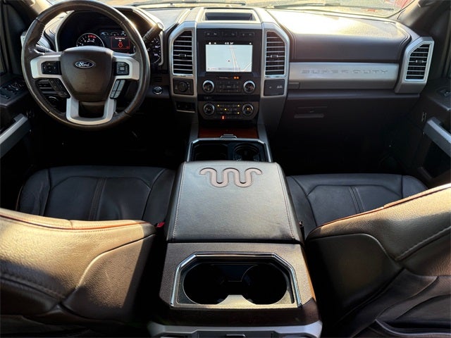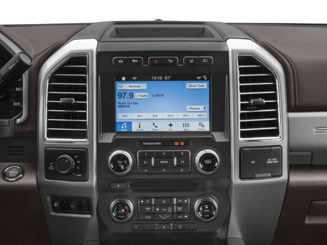 GVWR: 10,000 lb Payload Package, King Ranch Ultimate Package (BLIS Blind Spot Information System, Power-Deployable Running Boards, Quad Beam LED Headlamps & LED Taillamps, Tailgate Step & Handle, and Twin Panel Power Moonroof), Order Code 700A, Tow Technology Bundle (Adaptive Steering, Rear CHMSL Camera, and Ultimate Trailer Tow Camera System), 4WD, 10 Speakers, 110V/400W Outlet, 3.73 Axle Ratio, 4-Wheel Disc Brakes, ABS brakes, Adjustable pedals, Air Conditioning, Alloy wheels, AM/FM radio: SiriusXM, Auto High-beam Headlights, Auto tilt-away steering wheel, Auto-dimming Rear-View mirror, Automatic temperature control, Brake assist, CD player, Compass, Delay-off headlights, Driver door bin, Driver vanity mirror, Dual front impact airbags, Dual front side impact airbags, Electronic Stability Control, Emergency communication system: SYNC 3 911 Assist, Exterior Parking Camera Rear, Flow-Through Console, Front anti-roll bar, Front Bucket Seats, Front Center Armrest, Front dual zone A/C, Front fog lights, Front reading lights, Fully automatic headlights, Garage door transmitter, Heated door mirrors, Heated front seats, Heated steering wheel, Illuminated entry, Illuminated running boards, Leather steering wheel, Low tire pressure warning, Memory seat, Navigation System, Outside temperature display, Overhead airbag, Overhead console, Panic alarm, Passenger door bin, Passenger vanity mirror, Pedal memory, Power door mirrors, Power driver seat, Power passenger seat, Power steering, Power windows, Radio data system, Radio: Premium Sony Audio w/Single-CD/MP3 Player, Rain sensing wipers, Rear Parking Sensors, Rear reading lights, Rear seat center armrest, Rear step bumper, Rear window defroster, Remote keyless entry, Security system, SiriusXM Radio, Speed control, Split folding rear seat, Steering wheel memory, Steering wheel mounted A/C controls, Steering wheel mounted audio controls, SYNC 3 Communications & Entertainment System, Tachometer, Telescoping steering wheel, Tilt steering wheel, Traction control, Trip computer, Turn signal indicator mirrors, Unique King Ranch Leather 40/Console/40 Front Seats, Upfitter Switches (6), Variably intermittent wipers, Ventilated front seats, Wheels: 18 Bright Machined Cast Aluminum, and Wheels: 20 Bright Machined Cast Aluminum.