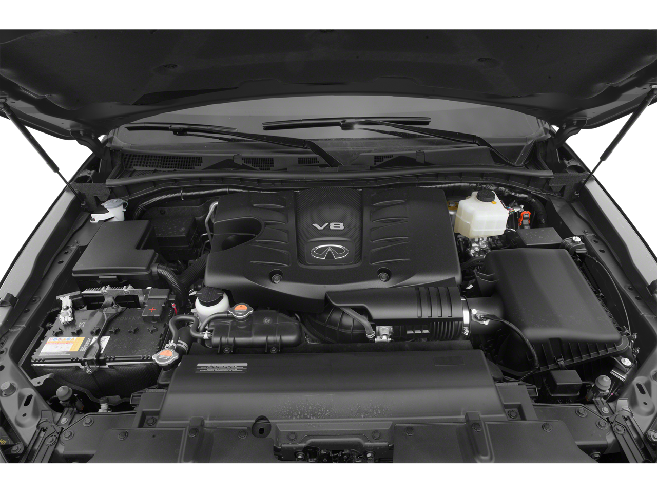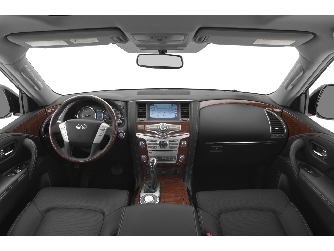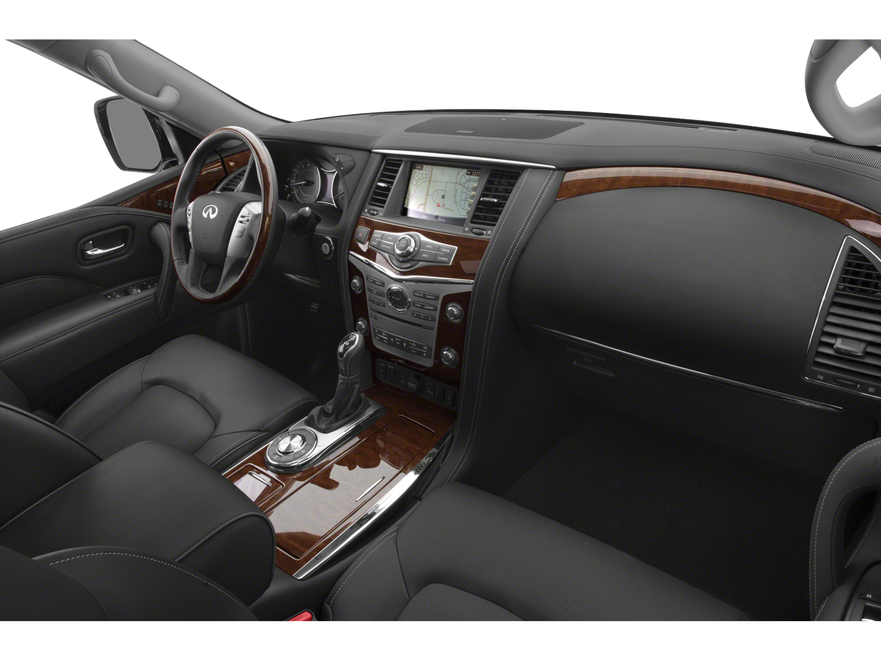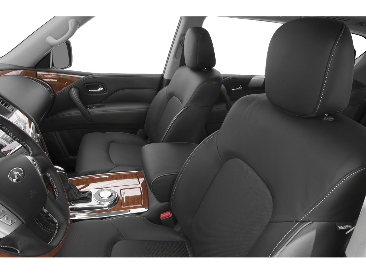 22 Wheel Package (Wheels: 22 x 8.0 14-Spoke Forged Aluminum-Alloy), All-Season Package (All-Season Floor Mats and Cargo Area Mat), Cargo Package (First-Aid Kit, High-Density Non-Slip Rear Cargo Carpet, and Nylon-Cord Cargo Net), ProACTIVE Package (Adaptive Front Lighting System, Front Pre-Crash Seatbelts, Headlight Washers, Hydraulic Body Motion Control System, Smart Rear View Mirror, and Vehicle Speed-Sensitive Power Steering), ProASSIST Package (Backup Collision Intervention (BCI), Blind Spot Intervention (BSI), Blind Spot Warning, Intelligent Cruise Control (Full-Speed Range), and Lane Departure Warning System), Sensory Package (Advanced Climate Control System, Bose Cabin Surround Sound System, Charcoal/Espresso Burl Trim, Chrome Outside Mirror Caps, Climate-Controlled Front Seats, Heated 2nd-Row Seats, and Semi-Aniline Leather-Appointed Seating w/Quilting), Theater Package (120V Power Outlet, Dual 8 Color Monitors, and Wireless Headphones (2)), 13 Speakers, 2.94 Axle Ratio, 3rd row seats: split-bench, 4-Wheel Disc Brakes, ABS brakes, Air Conditioning, Alloy wheels, AM/FM radio: SiriusXM, Anti-whiplash front head restraints, Auto High-beam Headlights, Auto tilt-away steering wheel, Auto-dimming door mirrors, Auto-dimming Rear-View mirror, Auto-leveling suspension, Automatic temperature control, Brake assist, Bumpers: body-color, CD player, Delay-off headlights, Driver door bin, Driver vanity mirror, Dual front impact airbags, Dual front side impact airbags, DVD-Audio, Electronic Stability Control, Emergency communication system: INFINITI Connection, Four wheel independent suspension, Front anti-roll bar, Front Bucket Seats, Front Center Armrest, Front dual zone A/C, Front fog lights, Front reading lights, Fully automatic headlights, Garage door transmitter: HomeLink, Genuine wood console insert, Genuine wood dashboard insert, Genuine wood door panel insert, Heated door mirrors, Heated Front Bucket Seats, Heated front seats, Heated steering wheel, Illuminated entry, INFINITI 4G WiFi, INFINITI Radiant Welcome Lighting, Leather Shift Knob, Leather steering wheel, Leather-Appointed Seats w/Stratford Burl Trim, Literature Kit, Low tire pressure warning, Memory seat, Navigation system: INFINITI InTouch Navigation, Occupant sensing airbag, Outside temperature display, Overhead airbag, Overhead console, Panic alarm, Passenger door bin, Passenger vanity mirror, Power door mirrors, Power driver seat, Power Liftgate, Power moonroof, Power passenger seat, Power steering, Power windows, Radiant Illuminated Kick Plates, Radio data system, Radio: AM/FM/HD w/Single In-Dash CD/DVD Player & MP3, Rain sensing wipers, Rear air conditioning, Rear anti-roll bar, Rear audio controls, Rear reading lights, Rear seat center armrest, Rear window defroster, Rear window wiper, Reclining 3rd row seat, Remote keyless entry, Roof rack: rails only, Roof Rail Cross Bars, Security system, Speed control, Speed-sensing steering, Split folding rear seat, Spoiler, Steering wheel memory, Steering wheel mounted audio controls, Tachometer, Telescoping steering wheel, Tilt steering wheel, Traction control, Trip computer, Turn signal indicator mirrors, Variably intermittent wipers, Voltmeter, and Wheels: 20 x 8.0 Aluminum-Alloy.