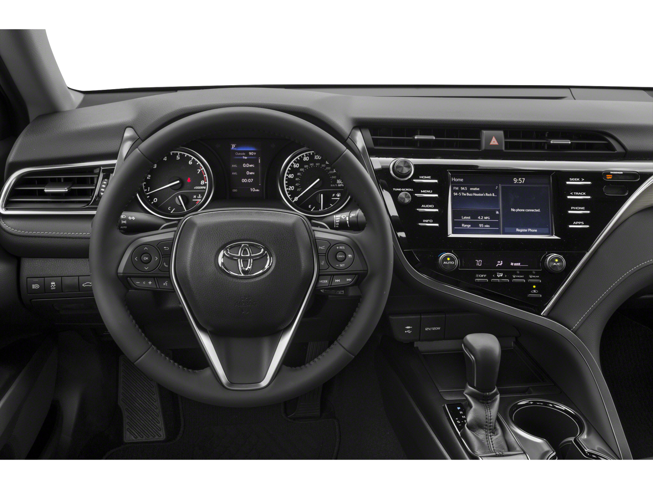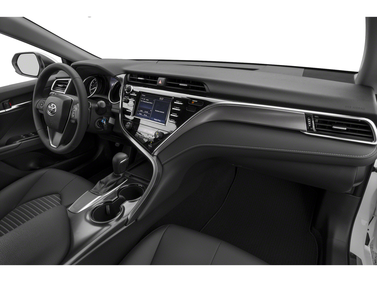 Cloth, 4-Wheel Disc Brakes, 6 Speakers, ABS brakes, Air Conditioning, Alloy wheels, AM/FM radio, Apple CarPlay, Auto High-beam Headlights, Automatic temperature control, Brake assist, Bumpers: body-color, Delay-off headlights, Driver door bin, Driver vanity mirror, Dual front impact airbags, Dual front side impact airbags, Electronic Stability Control, Emergency communication system: Safety Connect, Exterior Parking Camera Rear, Fabric Seat Trim w/SofTex, Four wheel independent suspension, Front anti-roll bar, Front Bucket Seats, Front Bucket Sport Seats, Front Center Armrest, Front reading lights, Fully automatic headlights, Illuminated entry, Knee airbag, Leather Shift Knob, Low tire pressure warning, Occupant sensing airbag, Outside temperature display, Overhead airbag, Overhead console, Panic alarm, Passenger door bin, Passenger vanity mirror, Power door mirrors, Power driver seat, Power steering, Power windows, Radio data system, Radio: Entune 3.0 Audio Plus w/App Suite, Radio: Entune 3.0 Audio w/App Suite, Rear anti-roll bar, Rear reading lights, Rear seat center armrest, Rear side impact airbag, Rear window defroster, Remote keyless entry, Security system, Speed control, Speed-sensing steering, Split folding rear seat, Spoiler, Sport steering wheel, Steering wheel mounted audio controls, Tachometer, Telescoping steering wheel, Tilt steering wheel, Traction control, Trip computer, Variably intermittent wipers, and Wheels: 8.0J x 18 Black Machined-Finish Alloy.