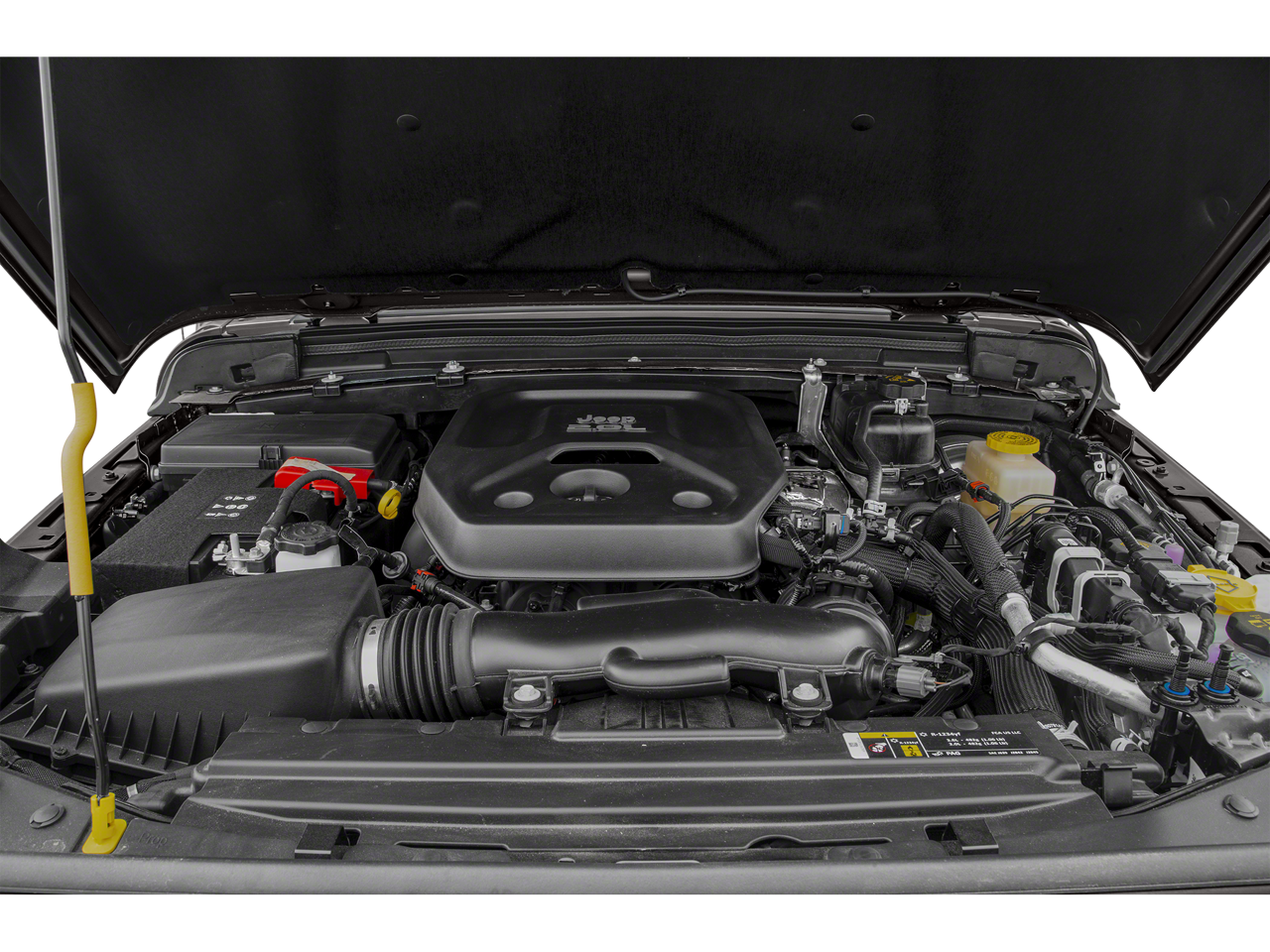 Quick Order Package 28G, 1-Year SiriusXM Radio Service, 3.45 Rear Axle Ratio, 4-Wheel Disc Brakes, 8 Speakers, ABS brakes, Air Conditioning, Alloy wheels, AM/FM radio: SiriusXM, Apple CarPlay, Apple CarPlay/Android Auto, Automatic temperature control, Aux Battery, Black 3-Piece Hard Top, Brake assist, Cloth Low-Back Bucket Seats, Compass, Delay-off headlights, Driver door bin, Driver vanity mirror, Dual front impact airbags, Dual front side impact airbags, Electronic Stability Control, Freedom Panel Storage Bag, Front anti-roll bar, Front Bucket Seats, Front Center Armrest w/Storage, Front dual zone A/C, Front fog lights, Front License Plate Bracket, Front reading lights, Fully automatic headlights, Garage door transmitter, Google Android Auto, GPS Antenna Input, Heated door mirrors, Heavy Duty Suspension w/Gas Shocks, Illuminated entry, Integrated roll-over protection, Integrated Voice Command w/Bluetooth®, Leather steering wheel, Low tire pressure warning, Manufacturer's Statement of Origin, No Soft Top, Non-Lock Fuel Cap w/o Discriminator, Occupant sensing airbag, Outside temperature display, Panic alarm, ParkView Rear Back-Up Camera, Passenger door bin, Passenger vanity mirror, Power door mirrors, Power steering, Power windows, Radio data system, Radio: Uconnect 4 w/7 Display, Rear anti-roll bar, Rear reading lights, Rear Window Defroster, Rear Window Wiper/Washer, Remote keyless entry, Security system, Speed control, Split folding rear seat, Steering wheel mounted audio controls, Stop-Start Dual Battery System, Tachometer, Telescoping steering wheel, Tilt steering wheel, Traction control, Trip computer, Variably intermittent wipers, Voltmeter, and Wheels: 18 x 7.5 Polished w/Gray Spokes.