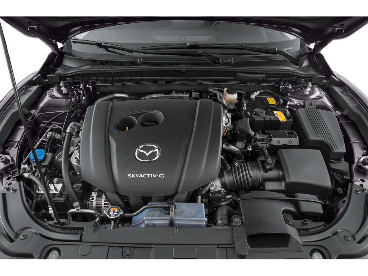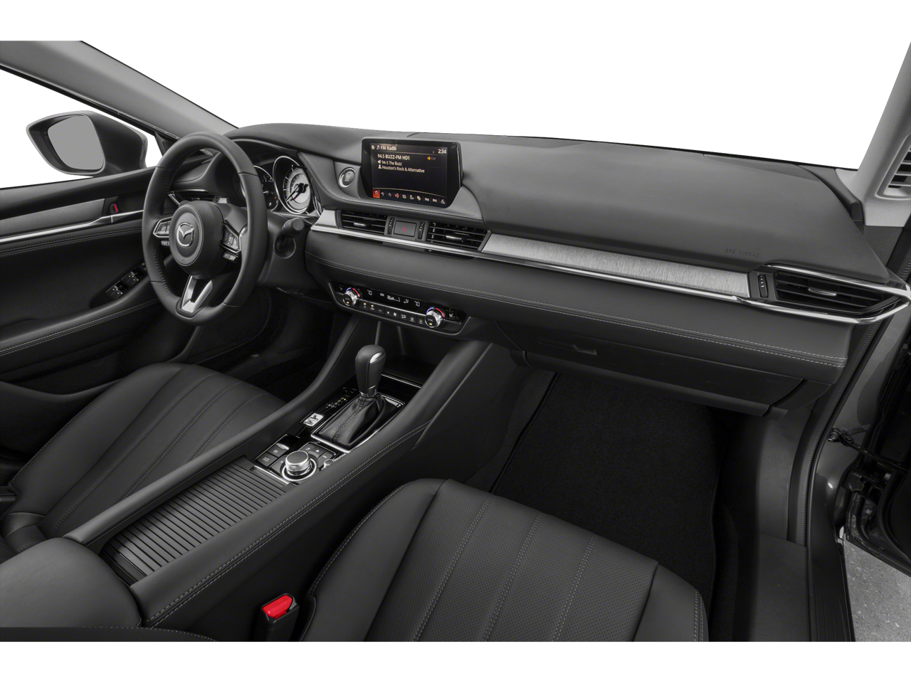 3-Level Heated Front Sport Bucket Seats, 4-Wheel Disc Brakes, 6 Speakers, ABS brakes, Air Conditioning, Alloy wheels, AM/FM radio, Anti-whiplash front head restraints, AppLink/Apple CarPlay and Android Auto, Auto High-beam Headlights, Automatic temperature control, Brake assist, Bumpers: body-color, Compass, Delay-off headlights, Driver door bin, Driver vanity mirror, Dual front impact airbags, Dual front side impact airbags, Electronic Stability Control, Emergency communication system: MAZDA CONNECT, Exterior Parking Camera Rear, Four wheel independent suspension, Front anti-roll bar, Front Bucket Seats, Front Center Armrest w/Storage, Front dual zone A/C, Front reading lights, Fully automatic headlights, Heated front seats, Illuminated entry, Leather Shift Knob, Leatherette Seat Trim, Low tire pressure warning, MAZDA CONNECT Infotainment System Voice Command, Occupant sensing airbag, Outside temperature display, Overhead airbag, Overhead console, Panic alarm, Passenger door bin, Passenger vanity mirror, Power door mirrors, Power driver seat, Power moonroof, Power steering, Power windows, Radio data system, Radio: AM/FM/HD, Rain sensing wipers, Rear anti-roll bar, Rear reading lights, Rear seat center armrest, Rear window defroster, Remote keyless entry, Snowflake White Pearl Mica Paint Charge, Speed control, Speed-sensing steering, Split folding rear seat, Steering wheel mounted audio controls, Tachometer, Telescoping steering wheel, Tilt steering wheel, Traction control, Trip computer, Turn signal indicator mirrors, Variably intermittent wipers, and Wheels: 19 x 7.5J w/Gun Metallic Finish.