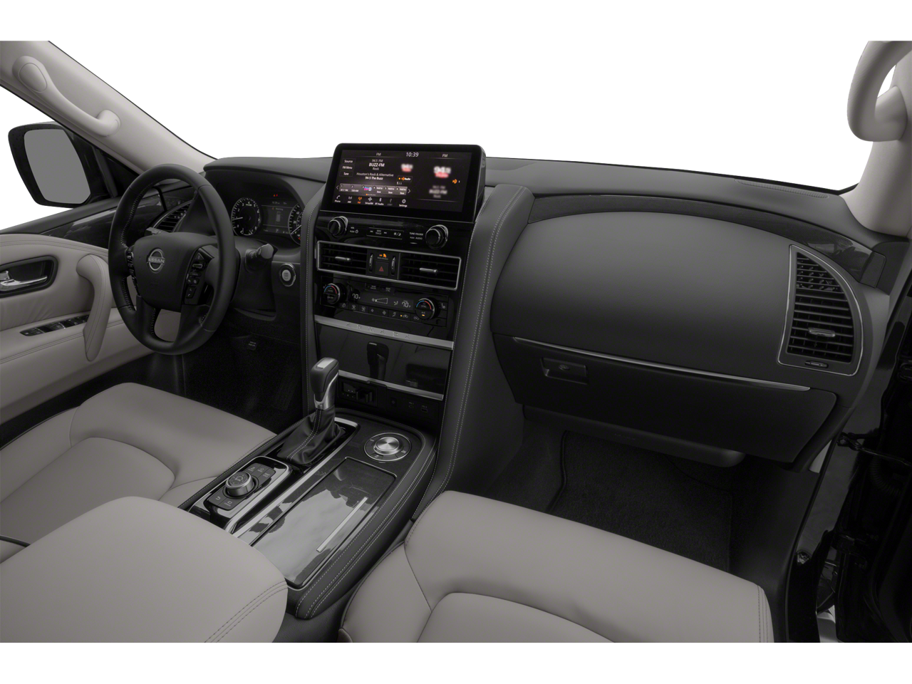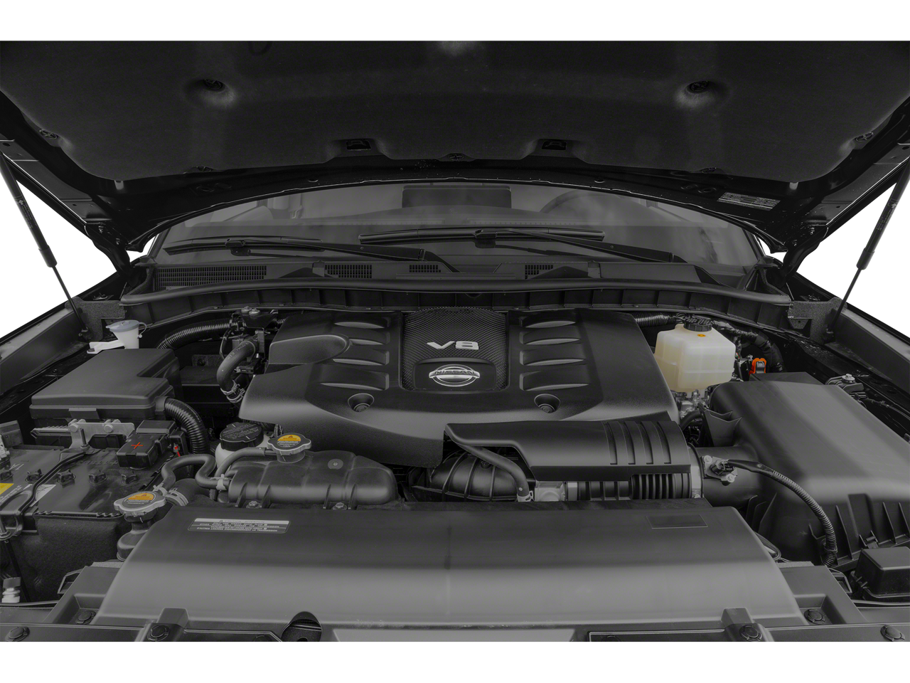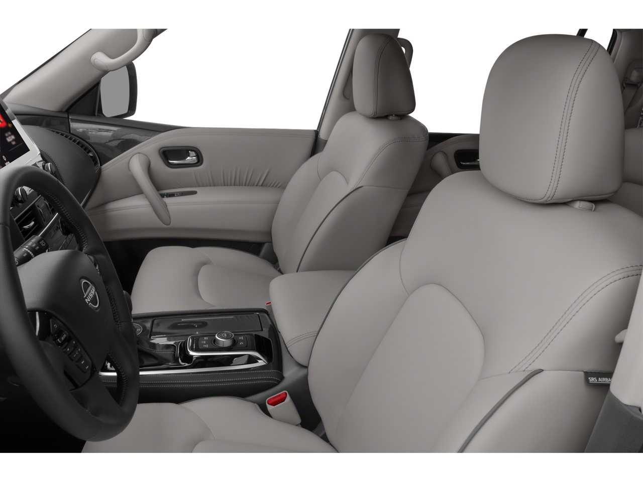 Cargo Package, SV Appearance Package (20 Aluminum Alloy Wheels, 20 Wheels, Auto-Dimming Interior Rear-View Mirror, Front Fog Lights, and Power Lift Gate), 18 Alloy Wheels, 2.94 Axle Ratio, 3rd Row Carpeted Floor Mats - Bench Seat, 3rd row seats: split-bench, 4-Wheel Disc Brakes, 6 Speakers, ABS brakes, Air Conditioning, Alloy wheels, AM/FM radio: SiriusXM, Anti-whiplash front head restraints, Auto High-beam Headlights, Auto tilt-away steering wheel, Auto-leveling suspension, Automatic temperature control, Brake assist, Bumpers: body-color, Delay-off headlights, Driver door bin, Driver vanity mirror, Dual front impact airbags, Dual front side impact airbags, Electronic Stability Control, Emergency communication system: NissanConnect Services, Four wheel independent suspension, Front anti-roll bar, Front Bucket Seats, Front Center Armrest, Front dual zone A/C, Front reading lights, Fully automatic headlights, Heated door mirrors, Heated Front Bucket Seats, Heated front seats, Illuminated entry, Leather Shift Knob, Leatherette Seat Trim, Low tire pressure warning, Navigation System, NissanConnect featuring Apple CarPlay and Android Auto, Occupant sensing airbag, Outside temperature display, Overhead airbag, Overhead console, Panic alarm, Passenger door bin, Passenger vanity mirror, Power door mirrors, Power driver seat, Power passenger seat, Power steering, Power windows, Radio: NissanConnect w/SiriusXM, Rear air conditioning, Rear anti-roll bar, Rear reading lights, Rear seat center armrest, Rear window defroster, Rear window wiper, Reclining 3rd row seat, Remote keyless entry, Security system, Special Paint - Aspen White, Speed control, Speed-sensing steering, Speed-Sensitive Wipers, Split folding rear seat, Spoiler, Steering wheel mounted audio controls, Tachometer, Telescoping steering wheel, Tilt steering wheel, Traction control, Trip computer, Turn signal indicator mirrors, Variably intermittent wipers, and Voltmeter.
