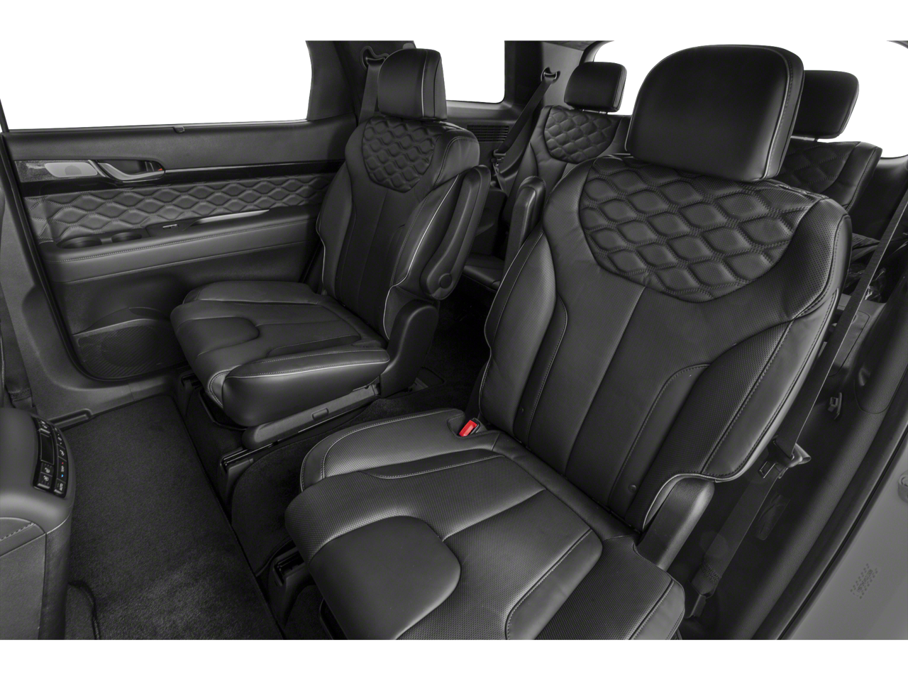 Option Group 01, 12 Speakers, 3.648 Axle Ratio, 3rd row seats: split-bench, 4-Wheel Disc Brakes, ABS brakes, Air Conditioning, Alloy wheels, AM/FM radio: SiriusXM, Apple CarPlay & Android Auto, Auto High-beam Headlights, Auto-dimming Rear-View mirror, Auto-leveling suspension, Automatic temperature control, Brake assist, Bumpers: body-color, Cargo Cover/Screen, Cargo Net, Cargo Tray, Carpeted Floor Mats, Compass, Delay-off headlights, Driver door bin, Driver vanity mirror, Dual front impact airbags, Dual front side impact airbags, Electronic Stability Control, Emergency communication system: Blue Link Connected Car Service (3-year complimentary subscription), First Aid Kit, Four wheel independent suspension, Front anti-roll bar, Front Bucket Seats, Front Center Armrest, Front dual zone A/C, Front reading lights, Fully automatic headlights, Garage door transmitter: HomeLink, harman/kardon® Speakers, Heads-Up Display, Heated & Ventilated Front Bucket Seats, Heated door mirrors, Heated front seats, Heated rear seats, Heated steering wheel, Illuminated entry, Knee airbag, Low tire pressure warning, Memory seat, Navigation System, Occupant sensing airbag, Outside temperature display, Overhead airbag, Overhead console, Panic alarm, Passenger door bin, Passenger vanity mirror, Power door mirrors, Power driver seat, Power Liftgate, Power moonroof, Power passenger seat, Power steering, Power windows, Premium Nappa Leather Seat Trim, Radio data system, Radio: AM/FM/MP3 Premium Audio System, Rain sensing wipers, Rear air conditioning, Rear anti-roll bar, Rear audio controls, Rear reading lights, Rear window defroster, Rear window wiper, Reclining 3rd row seat, Remote keyless entry, Security system, Speed control, Speed-sensing steering, Split folding rear seat, Spoiler, Steering wheel mounted audio controls, Tachometer, Telescoping steering wheel, Tilt steering wheel, Traction control, Trip computer, Turn signal indicator mirrors, Variably intermittent wipers, Ventilated front seats, Ventilated rear seats, Wheel Locks, and Wheels: 20 x 7.5J Calligraphy Exclusive Alloy.