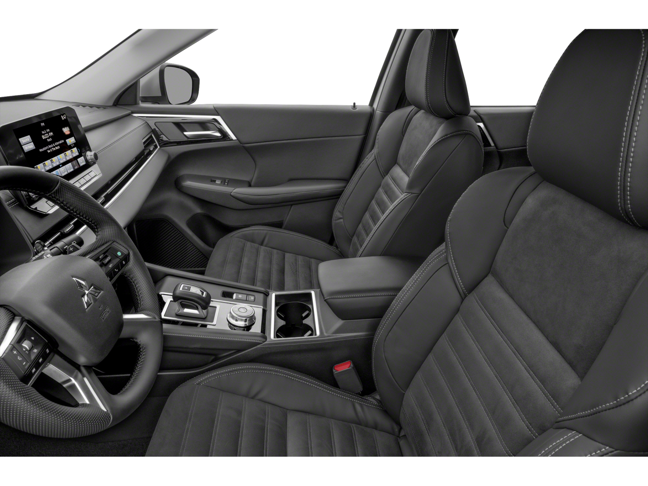 4WD, 3rd row seats: split-bench, 4-Wheel Disc Brakes, ABS brakes, Air Conditioning, Alloy wheels, AM/FM radio: SiriusXM, Android Auto & Apple CarPlay, Auto High-beam Headlights, Automatic temperature control, Axle Ratio: 5.694, Brake assist, Bumpers: body-color, Driver door bin, Driver vanity mirror, Dual front impact airbags, Dual front side impact airbags, Electronic Stability Control, Emergency communication system: Mitsubishi Connect w/ 24-month trial, Four wheel independent suspension, Front anti-roll bar, Front Bucket Seats, Front Center Armrest w/Storage, Front dual zone A/C, Front fog lights, Front reading lights, Fully automatic headlights, Headlight cleaning, Heated door mirrors, Heated Front Bucket Seats, Heated front seats, Illuminated entry, Knee airbag, Leather Shift Knob, Leather steering wheel, Low tire pressure warning, Occupant sensing airbag, Outside temperature display, Overhead airbag, Overhead console, Panic alarm, Passenger door bin, Passenger vanity mirror, Power door mirrors, Power driver seat, Power Liftgate, Power steering, Power windows, Radio data system, Rain sensing wipers, Rear anti-roll bar, Rear seat center armrest, Rear side impact airbag, Rear window defroster, Rear window wiper, Reclining 3rd row seat, Remote keyless entry, Security system, Speed control, Speed-Sensitive Wipers, Split folding rear seat, Spoiler, Steering wheel mounted audio controls, Synthetic Leather Seat Trim, Tachometer, Telescoping steering wheel, Tilt steering wheel, Traction control, Trip computer, Turn signal indicator mirrors, and Variably intermittent wipers.