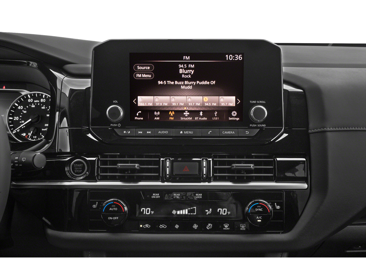 - Radio: AM/FM Audio System w/NissanConnect -inc: 6 speakers, Apple CarPlay and Android Auto, 8" color display w/multi-touch control, SiriusXM satellite radio w/advanced audio features, 2 illuminated front USB connection ports (1 type A, 1 type C) for iPod interface and other compatible devices, Bluetooth® hands-free phone system, streaming audio via Bluetooth®, hands-free text messaging assistant and Siri Eyes-Free/Google Assistant voice recognition