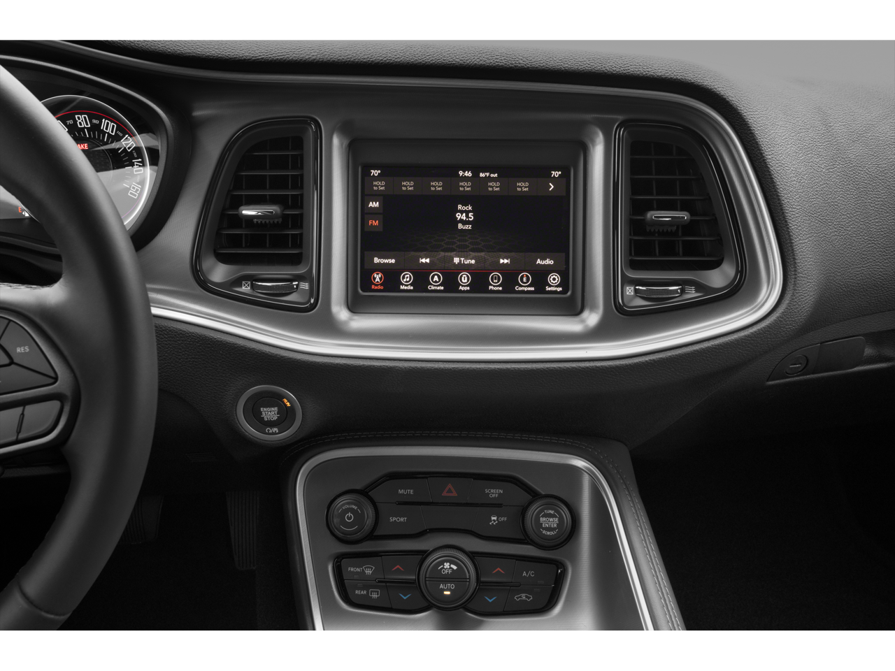 Cold Weather Group (180 Amp Alternator, Heated Front Seats, and Heated Steering Wheel), Quick Order Package 21B, 276 Watt Amplifier, 4-Wheel Disc Brakes, 6 Speakers, ABS brakes, Air Conditioning, Alloy wheels, AM/FM radio, Anti-whiplash front head restraints, Apple CarPlay, Apple CarPlay/Android Auto, Auto-dimming Rear-View mirror, Automatic temperature control, Body Color Exterior Mirrors, Brake assist, Bumpers: body-color, Delay-off headlights, Driver door bin, Driver vanity mirror, Dual front impact airbags, Dual front side impact airbags, Electronic Stability Control, Exterior Mirrors w/Heating Element, Four wheel independent suspension, Front anti-roll bar, Front Bucket Seats, Front Center Armrest, Front dual zone A/C, Front License Plate Bracket, Front reading lights, Fully automatic headlights, Google Android Auto, GPS Antenna Input, Heated door mirrors, Houndstooth Cloth Sport Seat, Illuminated entry, Integrated Center Stack Radio, Integrated Voice Command w/Bluetooth®, Leather Shift Knob, Low tire pressure warning, Media Hub (2 USB, AUX), Outside temperature display, Overhead airbag, Overhead console, Panic alarm, ParkView Rear Back-Up Camera, Passenger door bin, Passenger vanity mirror, Power door mirrors, Power driver seat, Power steering, Power windows, Radio data system, Radio: Uconnect 4 w/7 Display, Rear anti-roll bar, Rear reading lights, Rear seat center armrest, Rear window defroster, Remote keyless entry, Rhombi 2-Pc Wheel Center Cap, Security system, Speed control, Speed-sensing steering, Split folding rear seat, Spoiler, Steering wheel mounted audio controls, Tachometer, Telescoping steering wheel, Tilt steering wheel, Traction control, Trip computer, USB Host Flip, Variably intermittent wipers, and Wheels: 19 x 7.5 Satin Carbon.