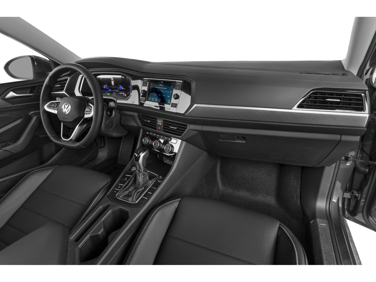 Black Wheel Package (Wheels: 17 Twin 5-Spoke Dark Graphite Painted Alloy), Panoramic Sunroof Package (Dual Front Reading Lights, Illuminated Vanity Mirrors, Overhead Storage Compartment, and Power Tilting & Sliding Panoramic Sunroof), Titan Black Premium Synthetic, 4 Speakers, 4-Wheel Disc Brakes, ABS brakes, Active Blind Spot Monitor, Air Conditioning, Alloy wheels, AM/FM radio, Auto-dimming Rear-View mirror, Auto-Dimming Rearview Mirror w/Electronic Compass, Automatic temperature control, Brake assist, Bumpers: body-color, Credit - Rear Sensors Removed, Delay-off headlights, Driver door bin, Driver vanity mirror, Dual front impact airbags, Dual front side impact airbags, Electronic Stability Control, Emergency communication system: VW Car-Net Safe & Secure 5-year, Exterior Parking Camera Rear, Front anti-roll bar, Front Bucket Seats, Front Center Armrest, Front Center Armrest Storage Organizing Trays, Front dual zone A/C, Front wheel independent suspension, Fully automatic headlights, Heated door mirrors, Heated Front Comfort Sport Seats, Heated front seats, Heavy Duty Trunk Liner w/VW CarGo Blocks, Illuminated entry, Leather Shift Knob, Low tire pressure warning, Occupant sensing airbag, Outside temperature display, Overhead airbag, Overhead console, Panic alarm, Passenger door bin, Passenger vanity mirror, Power door mirrors, Power driver seat, Power steering, Power windows, Radio data system, Radio: MIB3 Composition Color w/6.5 Touchscreen, Rain sensing wipers, Rear anti-roll bar, Rear reading lights, Rear seat center armrest, Rear window defroster, Remote keyless entry, Roadside Assistance Kit, Rubber Monster Mats Kit (Set of 4), Speed control, Speed-sensing steering, Split folding rear seat, Steering wheel mounted audio controls, Tachometer, Telescoping steering wheel, Tilt steering wheel, Traction control, Trip computer, Trunk Lid Lip Spoiler, V-Tex Leatherette Seat Trim, Variably intermittent wipers, VW Car-Net Safe & Secure 5-Year Plan, VW Care, and Wheels: 17 Twin 5-Spoke Silver Painted Alloy.