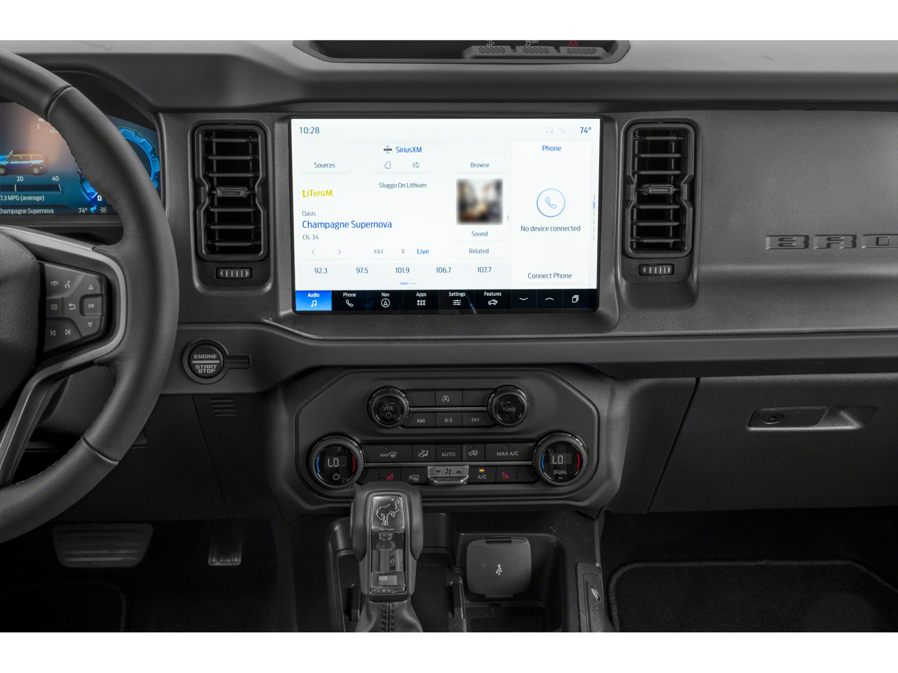 Equipment Group 222A Mid Package (2-Door Intelligent Access w/Lock/Unlock, Ambient Footwell Lighting, Connected Navigation, Dr & Pass Illuminated Sliding Visor Vanity Mirrors, Dual Smart Charging USB Ports, Dual-Zone Electronic Automatic Temperature Control, Front Row Heated Seats, Power Outlet - Back Side of Center Floor Console, and Rear Parking Sensors), 4-Wheel Disc Brakes, 4.46 Axle Ratio, 7 Speakers, ABS brakes, Air Conditioning, Alloy wheels, AM/FM radio: SiriusXM with 360L, AM/FM Stereo, Auto High-Beam Headlamps, Auto High-beam Headlights, BLIS Blind Spot Information System, Brake assist, Carbonized Gray Molded-In-Color Hard Top, Cloth Bucket Seats, Compass, Delay-off headlights, Driver door bin, Driver vanity mirror, Dual front impact airbags, Dual front side impact airbags, Electronic Stability Control, Emergency communication system: 911 Assist, Exterior Parking Camera Rear, Front anti-roll bar, Front Bucket Seats, Front Center Armrest, Front reading lights, Front wheel independent suspension, Fully automatic headlights, Heated door mirrors, Illuminated entry, Integrated roll-over protection, Internet access capable: FordPass Connect, Lane-Keeping System, Leather Shift Knob, Low tire pressure warning, Occupant sensing airbag, Outside temperature display, Overhead airbag, Overhead console, Panic alarm, Passenger door bin, Passenger vanity mirror, Power door mirrors, Power steering, Power windows, Pre-Collision Assist w/Automatic Emergency Braking, Radio data system, Rear-View Camera, Rear-Window Defroster & Washer, Remote keyless entry, Security system, SiriusXM w/360L, Speed control, Split folding rear seat, Steering wheel mounted audio controls, SYNC 4, Tachometer, Telescoping steering wheel, Tilt steering wheel, Traction control, Trip computer, Variably intermittent wipers, and Wheels: 17 Carbonized Gray-Painted Aluminum.