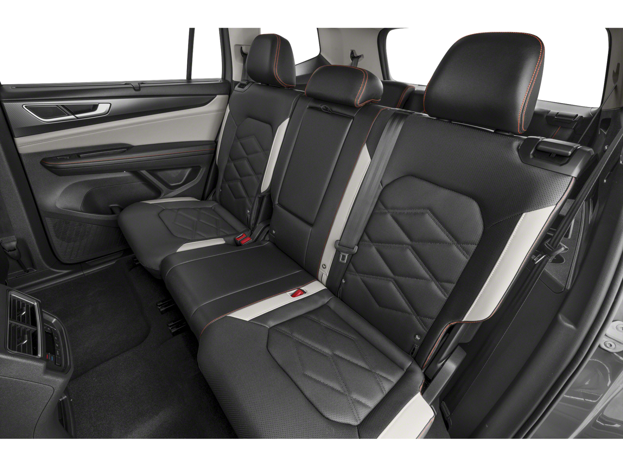 18 black painted 5-spoke alloy wheels, 3rd row seats: split-bench, 4-Wheel Disc Brakes, 6 Speakers, ABS brakes, Air Conditioning, Alloy wheels, AM/FM radio: SiriusXM with 360L, Auto High-beam Headlights, Auto-dimming Rear-View mirror, Automatic temperature control, Brake assist, Bumpers: body-color, Compass, Delay-off headlights, Driver door bin, Driver vanity mirror, Dual front impact airbags, Dual front side impact airbags, Electronic Stability Control, Emergency communication system: VW Car-Net Safe & Secure 5-year, Exterior Parking Camera Rear, Four wheel independent suspension, four-wheel independent suspension, Front anti-roll bar, Front Bucket Seats, Front Center Armrest, Front dual zone A/C, Front fog lights, Front reading lights, Fully automatic headlights, heated and Actively ventilated front bucket seats, Heated door mirrors, Heated front seats, Heated steering wheel, Illuminated entry, Low tire pressure warning, MIB3 composition media radio, Occupant sensing airbag, Outside temperature display, Overhead airbag, Overhead console, Panic alarm, Passenger door bin, Passenger vanity mirror, perforated V-Tex leatherette seating surfaces, Power door mirrors, Power driver seat, Power Liftgate, Power moonroof: Panoramic, Power steering, Power windows, Radio data system, Rain sensing wipers, Rear air conditioning, Rear anti-roll bar, Rear reading lights, Rear seat center armrest, Rear window defroster, Rear window wiper, Remote keyless entry, Security system, Speed control, Speed-sensing steering, Split folding rear seat, Spoiler, Steering wheel mounted audio controls, Tachometer, Telescoping steering wheel, Tilt steering wheel, Traction control, Trip computer, Turn signal indicator mirrors, Variably intermittent wipers, and Ventilated front seats.